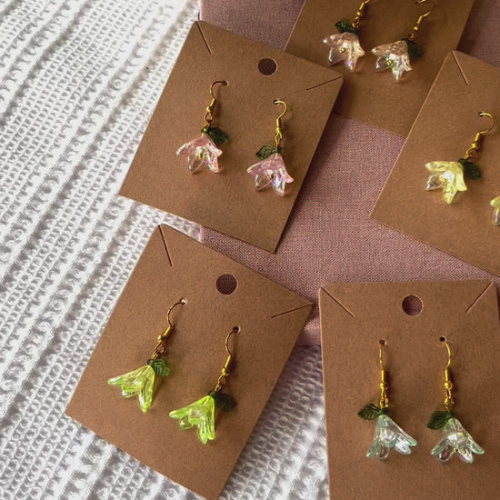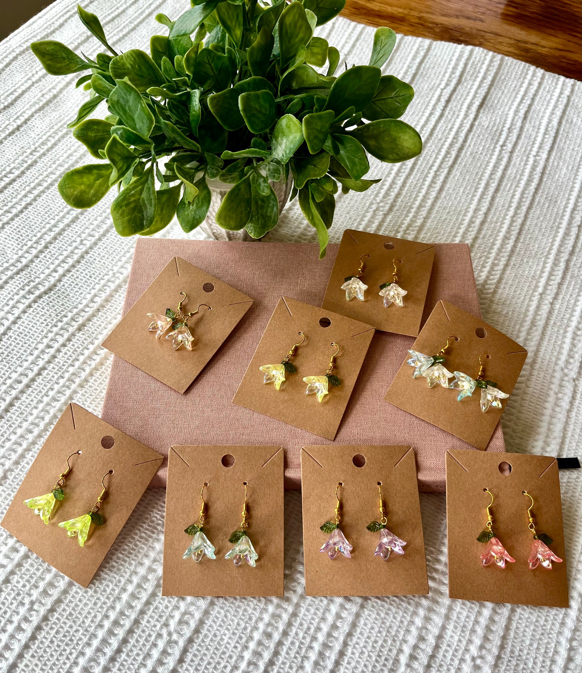 Each pair features a pastel acrylic flower and leaf charm, suspended from gold-plated, hypoallergenic ear wires. Lightweight, airy, and full of spring magic, they make a thoughtful gift or a treat for yourself.