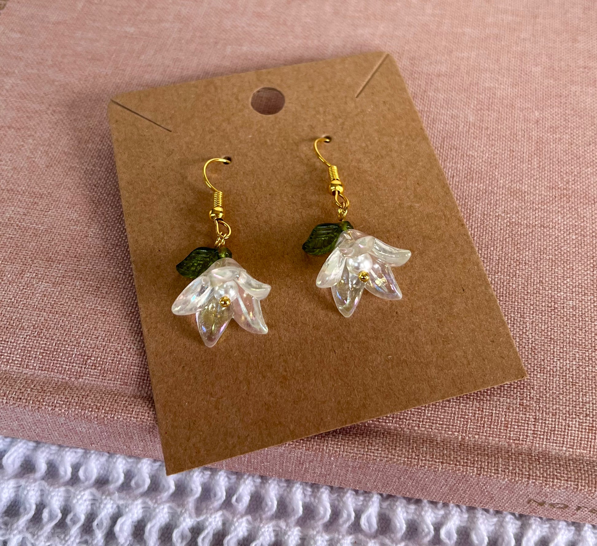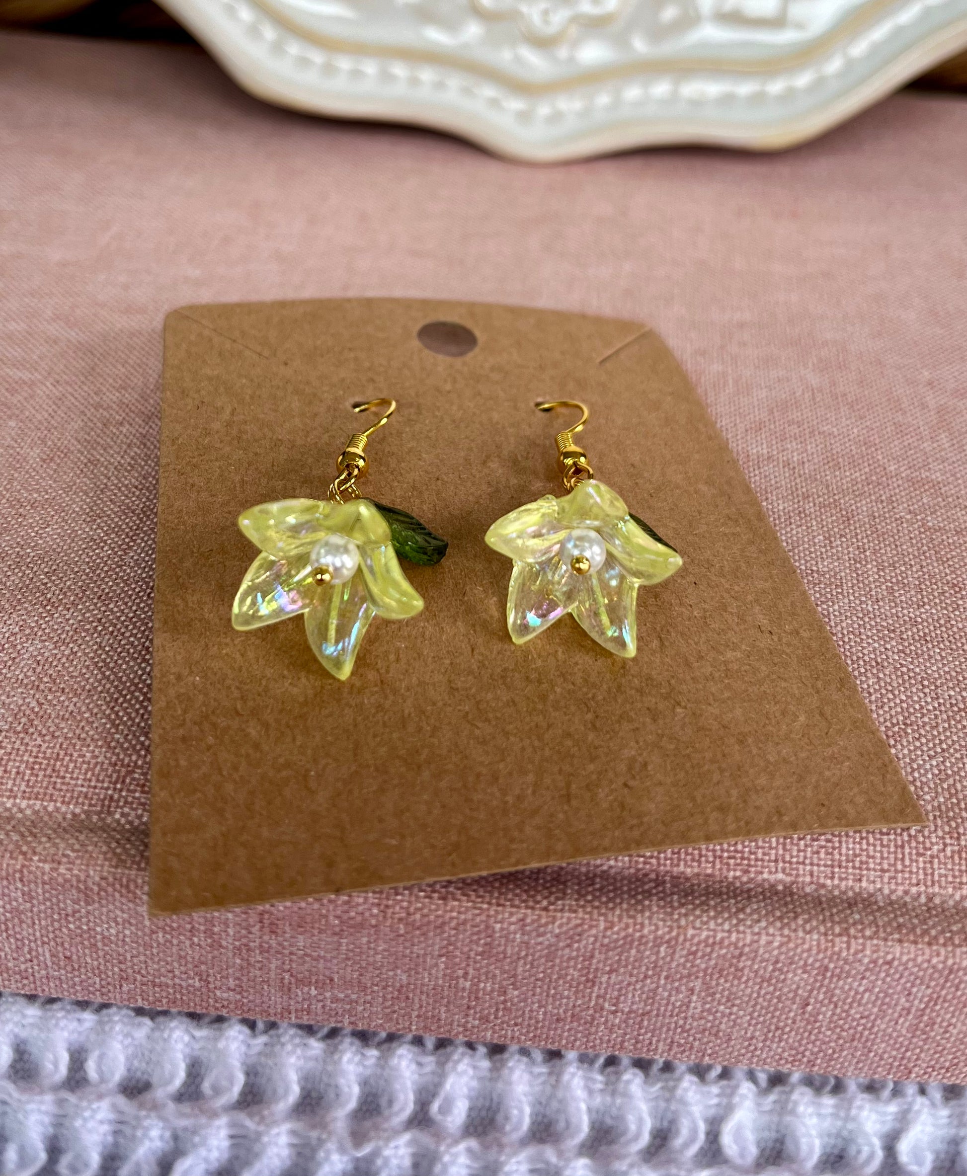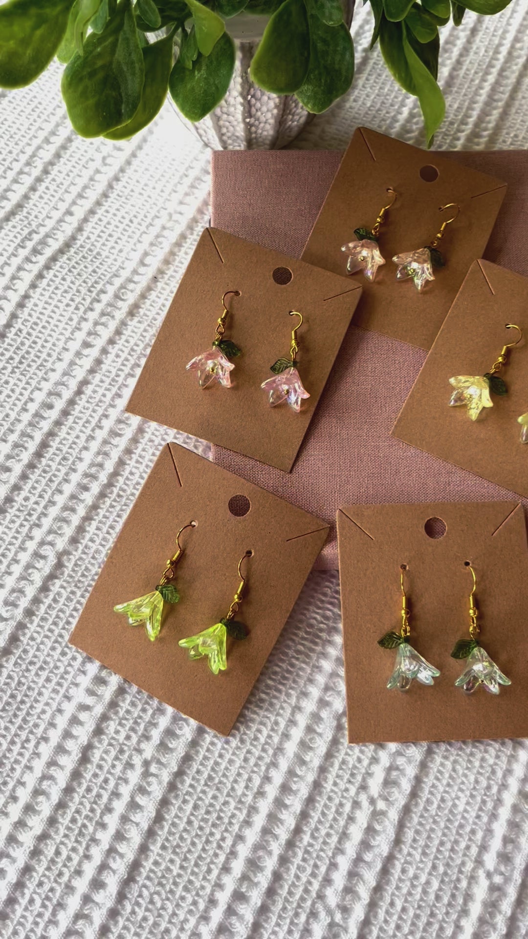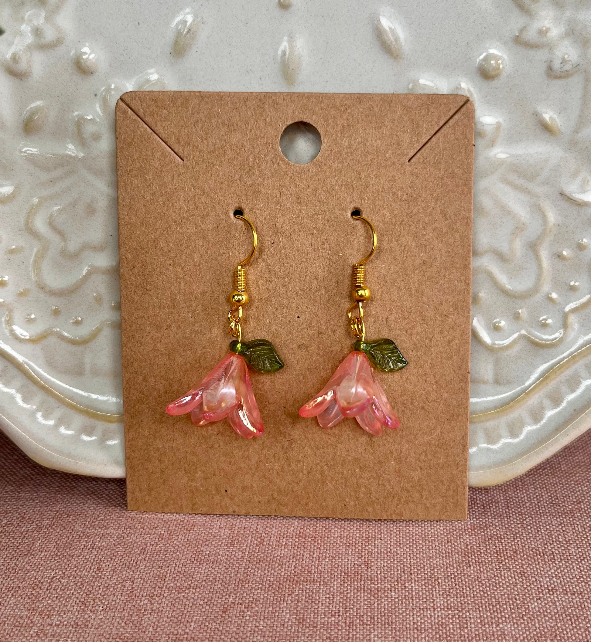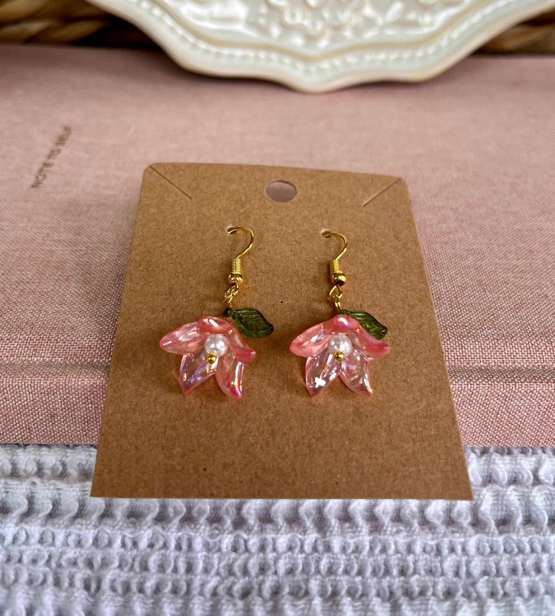 • Materials: Acrylic flower + leaf charm, gold-plated hypoallergenic ear wires (nickel-free)