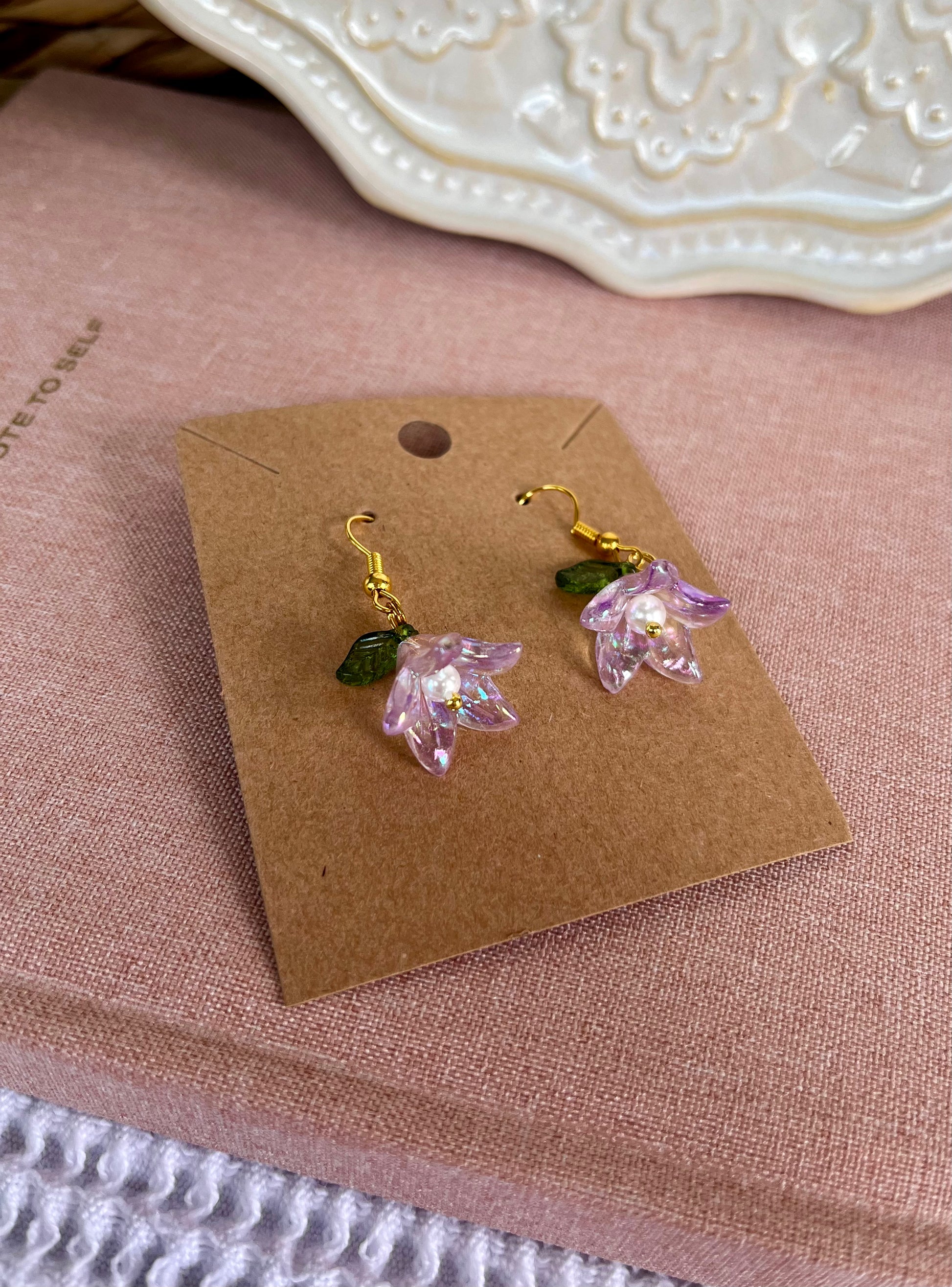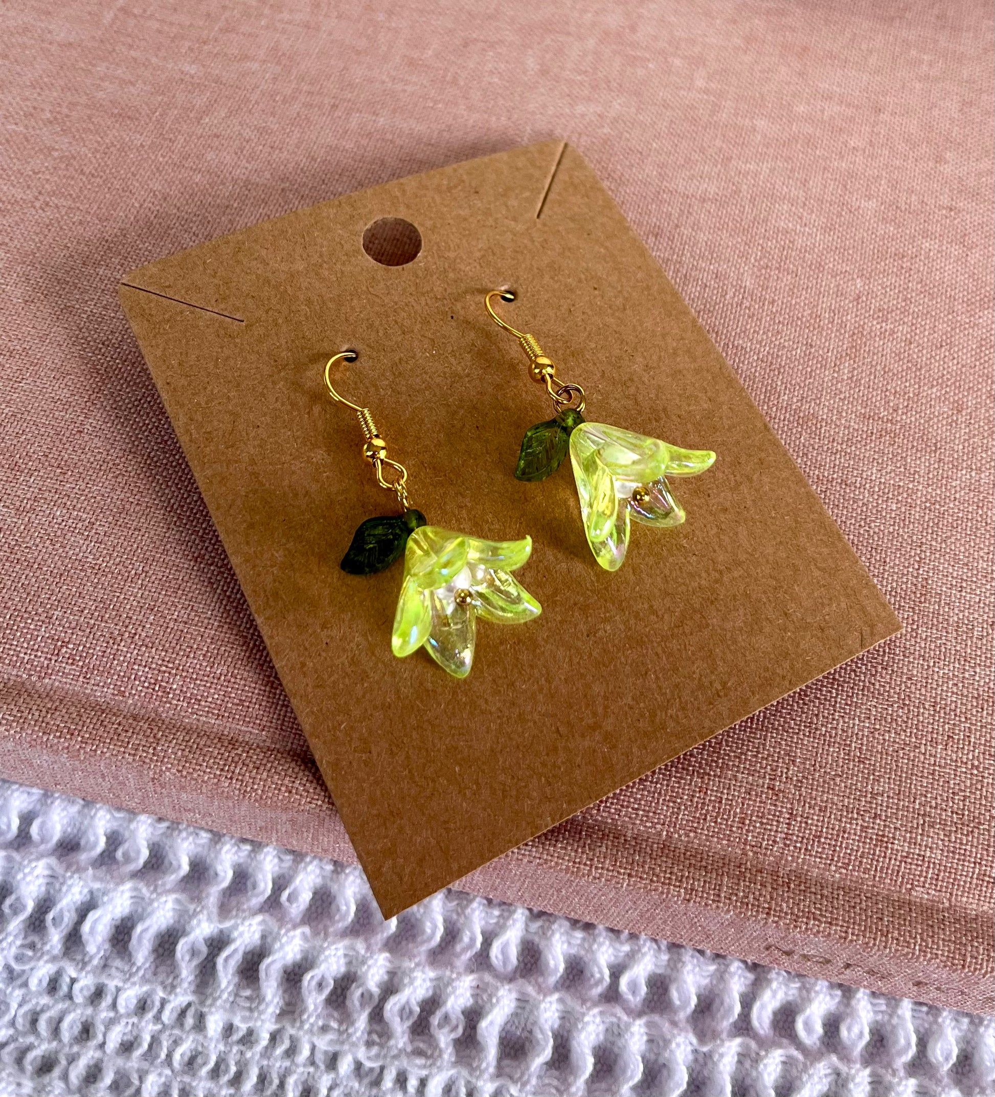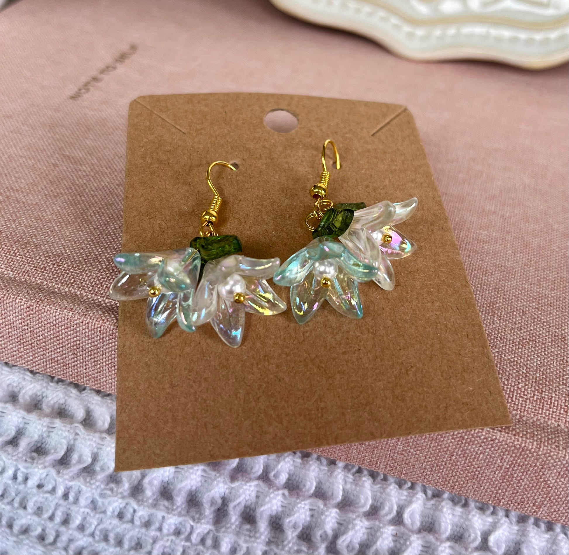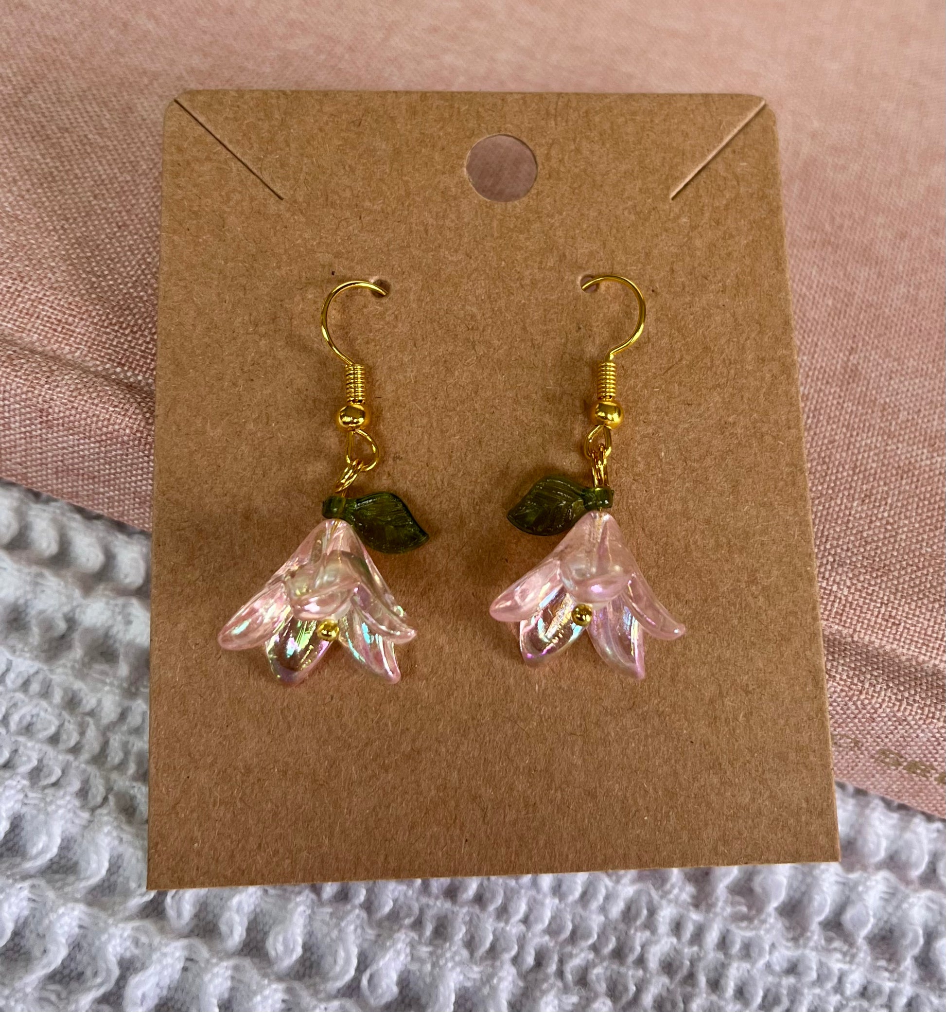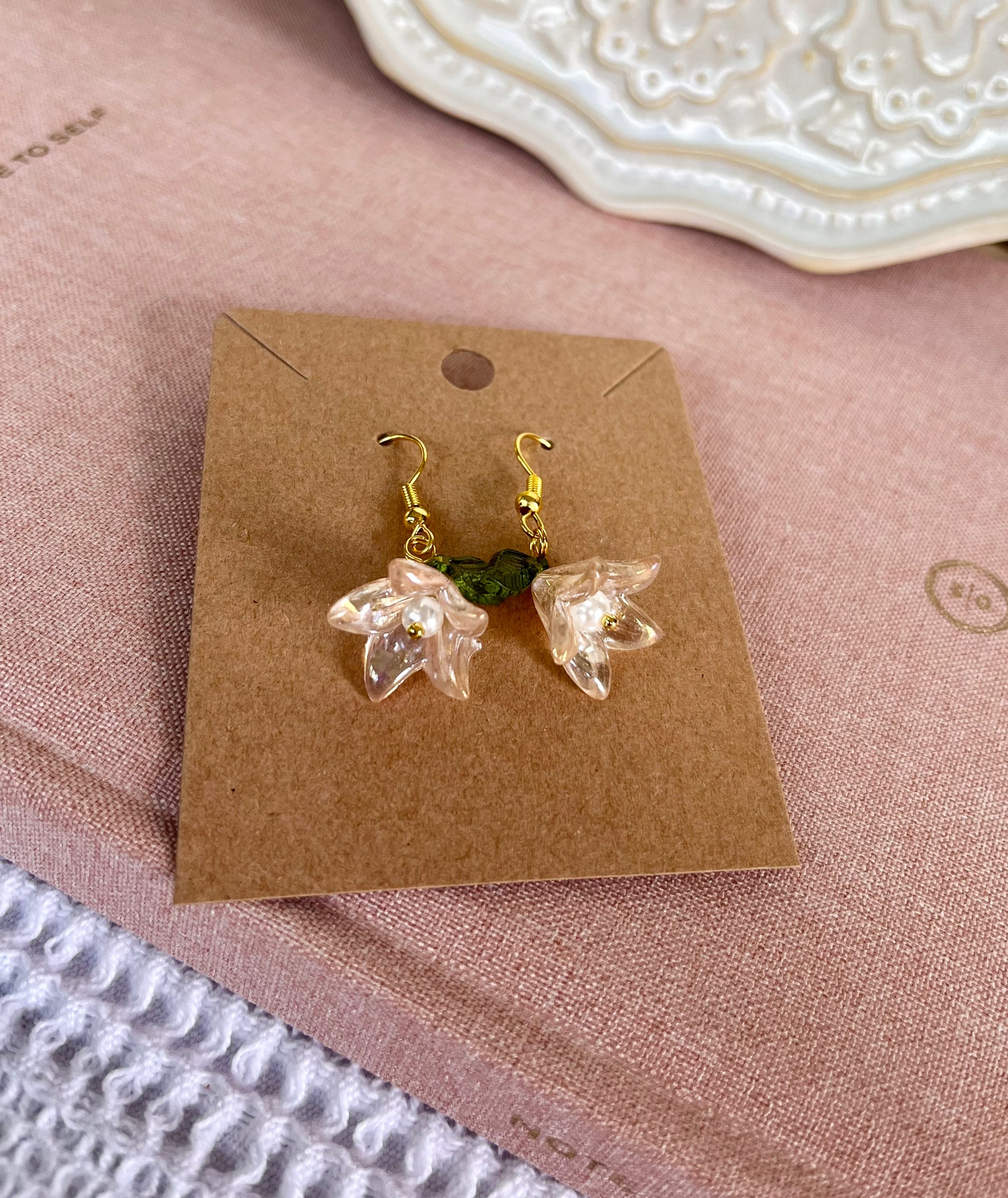 • Materials: Acrylic flower + leaf charm, gold-plated hypoallergenic ear wires (nickel-free)