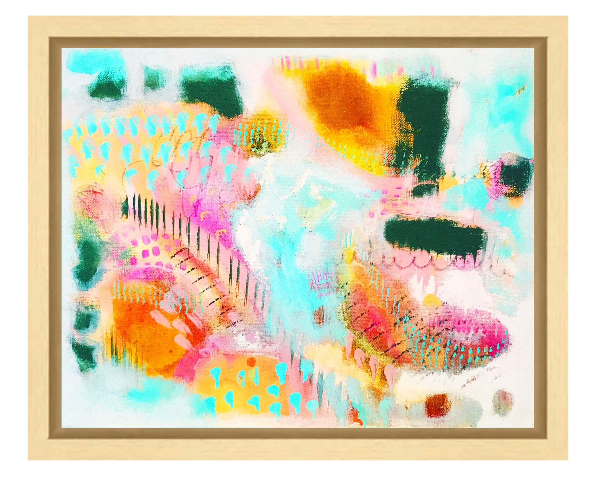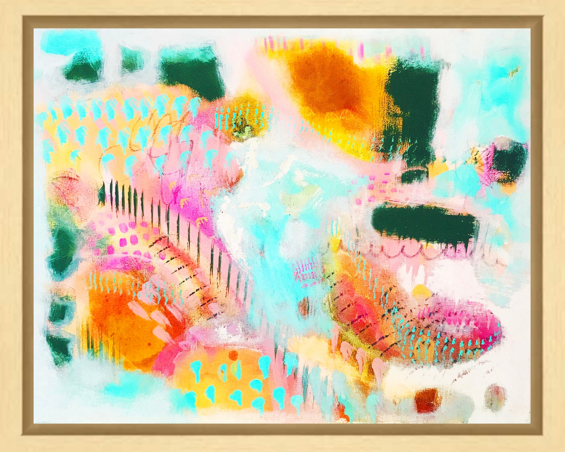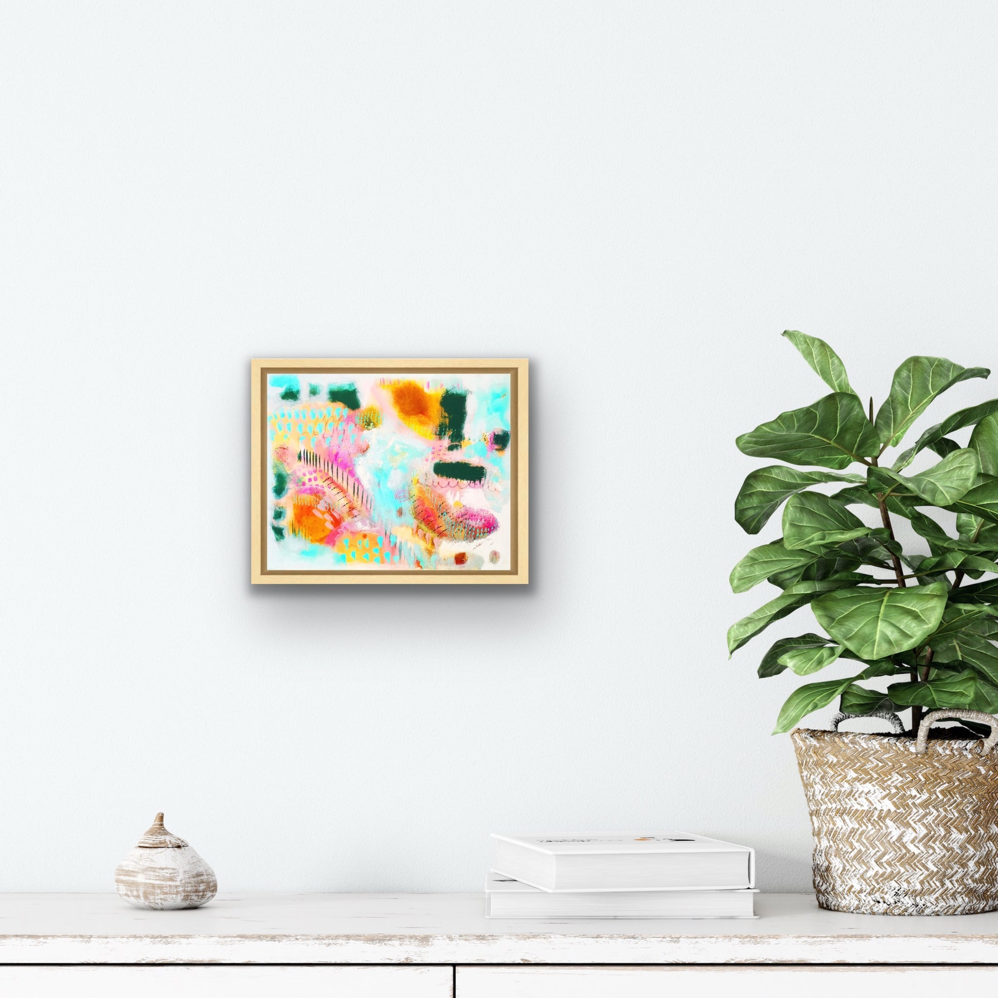This framed canvas print is a quality reproduction of my original painting, beautifully textured, with a nice weighted feel. It will be printed on artisan archival canvas with a fine art Giclee printer using archival grade Epson inks. The canvas will be stretched & mounted, with a white border on the edges, measuring 1.5 inches deep. The maple float frame (pictured) is 2 inches deep to perfectly accommodate the canvas print. Includes hanging hardware.